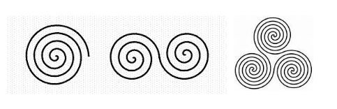 ve bundan dolayı da spiral eski mezar taşlarında da kullanılmıştır. Üçlü spiral (Triskelion) ise dişil semboldür. Hristiyanlıkta ataerkilleştirilmiş ve “Baba, Oğul ve Kutsal Ruh” diye tanımlanmış olan Trinity’nin öncülü ve dişildir : “Anne, Kız ve Bilge Nine”. Üçlü Tanrıça sembolüdür. Bu üçleme vücut, ruh ve akıl ya da Cennet, Yeryüzü ve Cehennem’dir. İçerisinde üç sayısının sembolizmini barındırır.